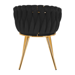 The pleasant-to-the-touch material, velvet upholstery in shades of black gives the chair a unique character, and the aesthetically interwoven fabric on the backrest emphasizes the unique appearance of the furniture. This gives it an exclusive look and ensures comfort of use. The frame in shades of gold adds elegance and prestige, perfectly matching the velvet. The elegant 4Rico chair is an exceptionally comfortable piece of furniture that will decorate the reception area of any beauty salon.