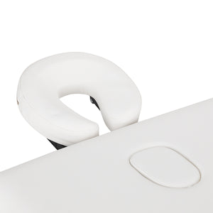 The three-segment table design allows you one of the segments to be lifted to act as a backrest. The angle adjustment allows the patient to be comfortably positioned in a semi-sitting or sitting position, which is particularly useful for therapies that require repositioning, reflexology or cosmetic treatments. The solid support mechanism ensures stability and safety, and the possibility of adjustment increases the table's functionality and allows it to be better suited to the specific services performed.