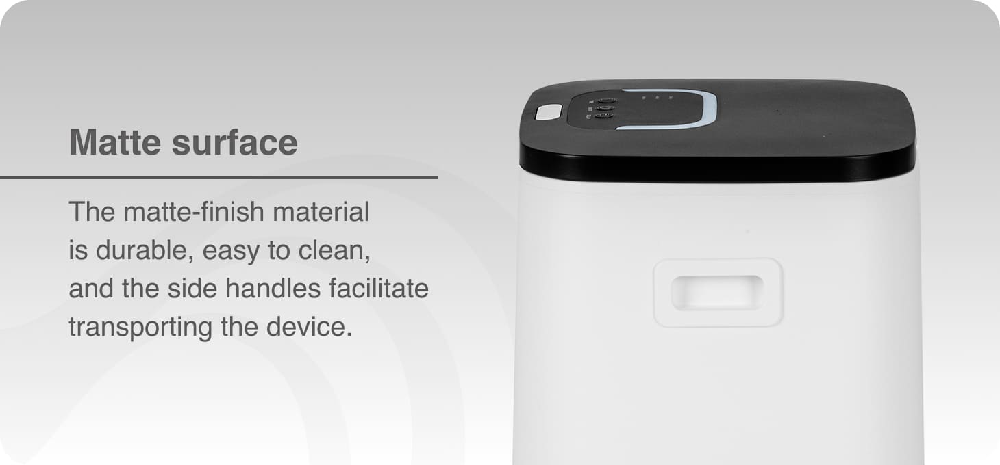 The heater housing is made of matt white plastic with a black lid is durable and easy to clean. The free-standing design with handles on the sides makes the unit easy to carry and store.