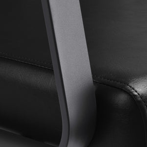The profiled chair provides adequate lumbar support and, therefore, high comfort of use. Metal armrests in shades of gry with a geometric shape allow for the correct positioning of the customer's shoulders. Filling with durable, deformation-resistant foam and upholstery made of pleasant-to-touch synthetic leather in shades of black ensure the durability of the furniture, ease of cleaning and comfortable use for a long time. The original, elegant appearance of the hair wash unit gives the interior a unique expression. The set includes complete fittings in shades of black, including a faucet, a shower head and dedicated hoses to provide a complete set of tools for work.