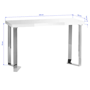 The modern form of the desk, combining a white top with silver, geometric legs, adds lightness and elegance to the interior. Thanks to its compact, yet stylish form, the desk will work perfectly in both small salons and larger, modern interiors.