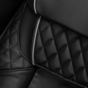 The ergonomically shaped chair provides comfortable support for the back, neck and legs, adapting to the natural curves of the body. The interior is upholstered in soft, synthetic leather in an elegant shade of black, and the durable foam padding ensures comfort. The materials used are not only durable but also moisture-resistant and easy to clean. Precise stitching emphasises its modern and aesthetic appearance, while the solid construction ensures long-lasting reliability. The Sakura Luxury 808 model combines functionality with timeless design, making it a perfect fit for a variety of interiors. It is the perfect choice for relaxing after a busy day or a demanding workout.