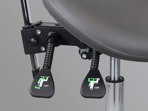 Ergonomic saddle stool with backrest and advanced seat and backrest adjustment. The contoured seat ensures optimal weight distribution and facilitates a natural posture. Solid construction and backrest provide full stability. Wheels allow for smooth movement. The stool has an aluminum, chrome-plated construction.