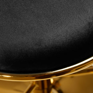 Le revêtement en velours agréable au toucher dans les tons noirs confère au tabouret un caractère unique, et le matériau esthétiquement tressé sur le dossier souligne l'aspect unique du meuble. La finition rend le meuble accrocheur. La structure dans les tons dorés ajoute de l'élégance et du prestige, s'harmonisant parfaitement avec le velours.