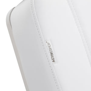 La construction solide du fauteuil assure la stabilité et la durabilité lors d'une utilisation quotidienne. Le siège rempli de mousse de dureté appropriée garantit le confort même lors des soins de longue durée. Le revêtement en similicuir agréable au toucher dans les tons de blanc donne à l'ensemble un aspect professionnel, tout en étant résistant à l'humidité et facile à nettoyer. La base durable garantit la stabilité, et les coutures soigneusement profilées soulignent le caractère moderne du meuble et augmentent l'ergonomie du siège.