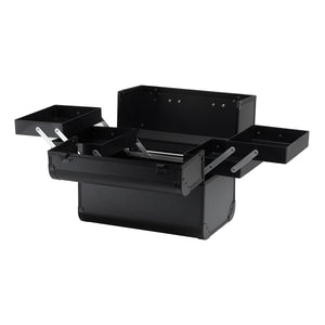 Le design moderne avec une finition lisse des parois dans les tons de noir avec des accents métalliques ajoute de l'élégance. La poignée facilite le transport, ce qui est particulièrement important pour les stylistes mobiles. Fabriqué à partir de matériaux durables et résistants aux dommages, il assure un confort d'utilisation au quotidien. La fermeture solide à loquet avec une clé protège le contenu, et la construction légère et durable rend la mallette facile à transporter.
