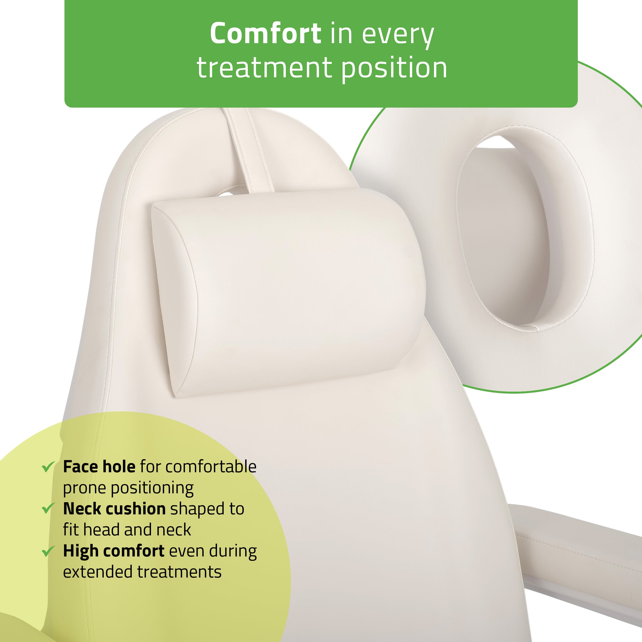 Coussin de nuque souple : de forme ergonomique pour s'adapter aux contours de la tête et du cou, assurant un soutien stable et un confort élevé tout au long du traitement