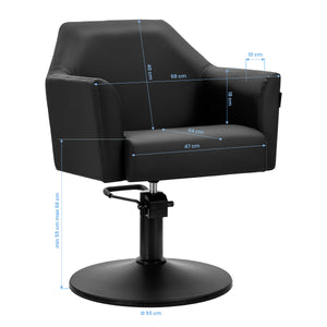Le fauteuil de coiffure Gabbiano Davos est une combinaison de fonctionnalité moderne et d'esthétique intemporelle. Équipé d'un vérin hydraulique robuste, il permet un réglage facile de la hauteur, ce qui facilite le travail du styliste. L'assise ergonomique et les accoudoirs profilés de manière appropriée garantissent le confort même pendant les longues séances, et le design minimaliste confère au fauteuil un caractère universel qui s'intégrera facilement dans le décor de presque tous les salons.
