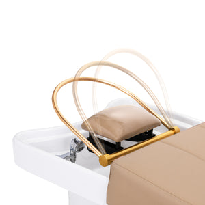 L'arche dorée avec angle d'inclinaison réglable, conçue pour Waterfall Head SPA, est une solution innovante qui permet un soin complet du cuir chevelu. Les jets d'eau agissent comme un massage naturel, améliorant la circulation sanguine, réduisant la tension et le stress. Les flux d'eau contrôlés avec précision favorisent la régénération des cheveux et hydratent intensément la peau. La cascade avec possibilité de réglage de l'angle assure un nettoyage en profondeur du cuir chevelu et une relaxation, soulageant les affections telles que les maux de tête ou la raideur de la nuque. Grâce au système intelligent de circuit fermé, l'arche prélève l'eau du bassin et la réutilise, assurant ainsi un massage aquatique ininterrompu. C'est une combinaison de technologie et de relaxation qui favorise la santé des cheveux et le bien-être.