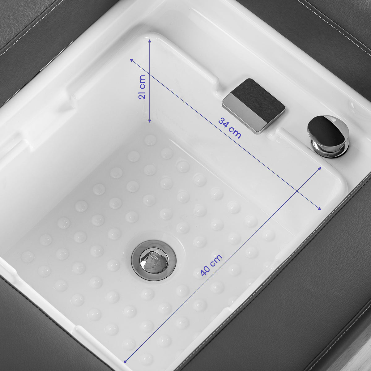 The adjustable headrest with extendable and adjustable tilt angle ensures a perfect fit for the user, enhancing comfort during treatments. The set includes ergonomic cushions, including a headrest with a face opening, which allows for not only scalp treatments but also massages and a variety of body and facial treatments. The built-in basin expands the functionality of the lounger, allowing for foot care treatments, including pedicures. This solution further enhances the feeling of relaxation and allows for an even more comprehensive range of services. These practical features make the bed a versatile piece of equipment for beauty and wellness salons, ensuring both client comfort and the effectiveness of treatments performed.