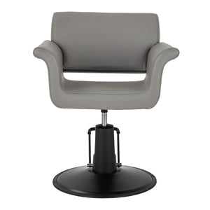 The Gabbiano Lucca hairdressing chair combines modern simplicity with the comfort of everyday use. The round, black base ensures stability, while synthetic leather upholstery in shades of grey ensures comfort during treatments. Durable, moisture-resistant materials make this model not only comfortable but also exceptionally easy to care for, maintaining its aesthetic appearance for years. The distinctive outwardly curved armrests give the chair an elegant look while also supporting a comfortable position for the client. This versatile model will fit perfectly into both modern and more classic interiors, emphasising the professional style of the salon.
