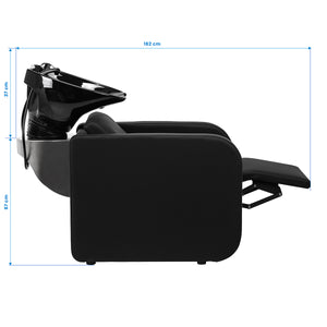 La profondeur de la vasque en céramique dans les tons noirs permet de réaliser confortablement et efficacement une large gamme de services de coiffure, en évitant les éclaboussures excessives d'eau et de produits utilisés pendant le traitement. Le matériau utilisé rend la vasque durable, résistante aux décolorations et aux rayures et très facile à nettoyer. Le col profilé et le dossier incliné assurent un soutien et un confort lors du lavage des cheveux, et grâce à la couverture confortable en plastique dans les tons noirs, le client ne ressentira pas les désagréments liés à la fraîcheur de la surface en céramique.