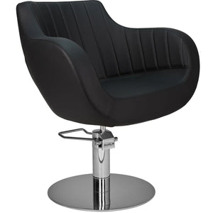 THOMAS is one of our bestsellers, loved for its bold shape, generous seat, and wide armrests. Its ergonomic construction delivers outstanding comfort for both clients and stylists. This is a chair that combines modern form with long-term durability. Available also with elegant vertical stitching that gives it a lighter, more refined look Black upholstery
