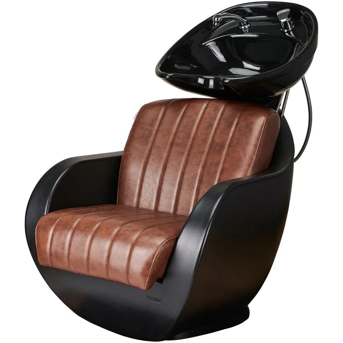 The THOMAS Backwash is a perfect blend of style and functionality. Its sleek silhouette, soft cushions, and visual lightness make it an excellent option for modern hair salons and barbershops. It looks great in smaller spaces while still offering full comfort during use. Brown upholstery