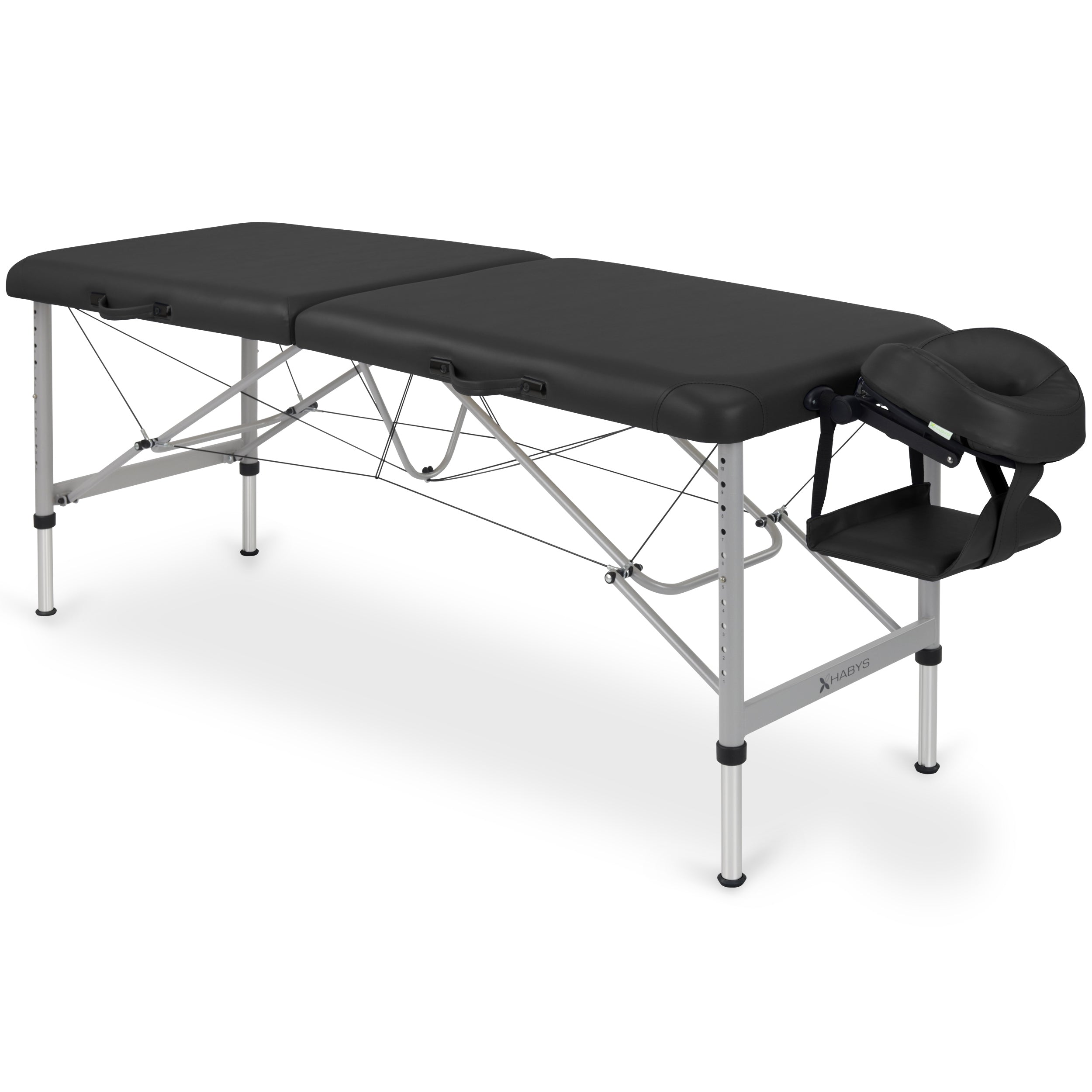 Aero Stabila est une table en aluminium à deux sections de HABYS avec une construction ultra-légère et une stabilité accrue. Le système de câbles utilisé à la place d'un troisième pied de stabilisation supplémentaire comme dans le cas de la table Medmal (en raison du poids inférieur des câbles) est conçu pour réduire la sensibilité à la pression verticale de la partie centrale du plateau de la table.