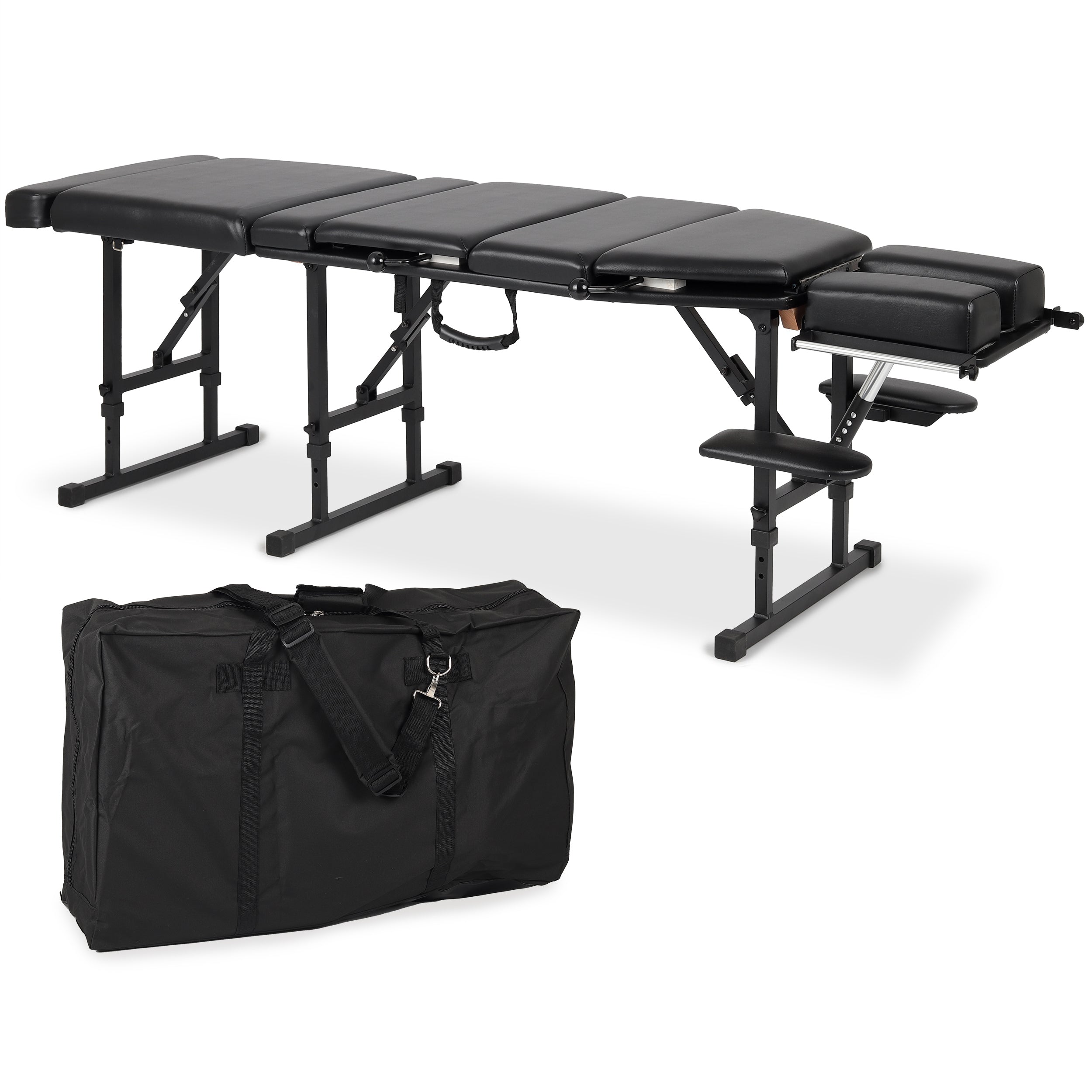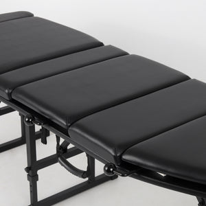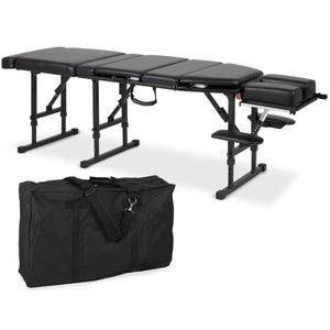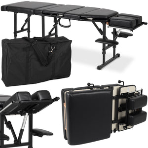 Table professionnelle et pliable pour la physiothérapie, la thérapie manuelle, l'ostéopathie et les éléments de la chiropractie, assurant une ergonomie appropriée pendant le massage. Elle dispose d'options de réglage avancées, d'une mousse confortable et d'une structure de pieds stable. Grâce à son poids approprié, elle est pratique à transporter.