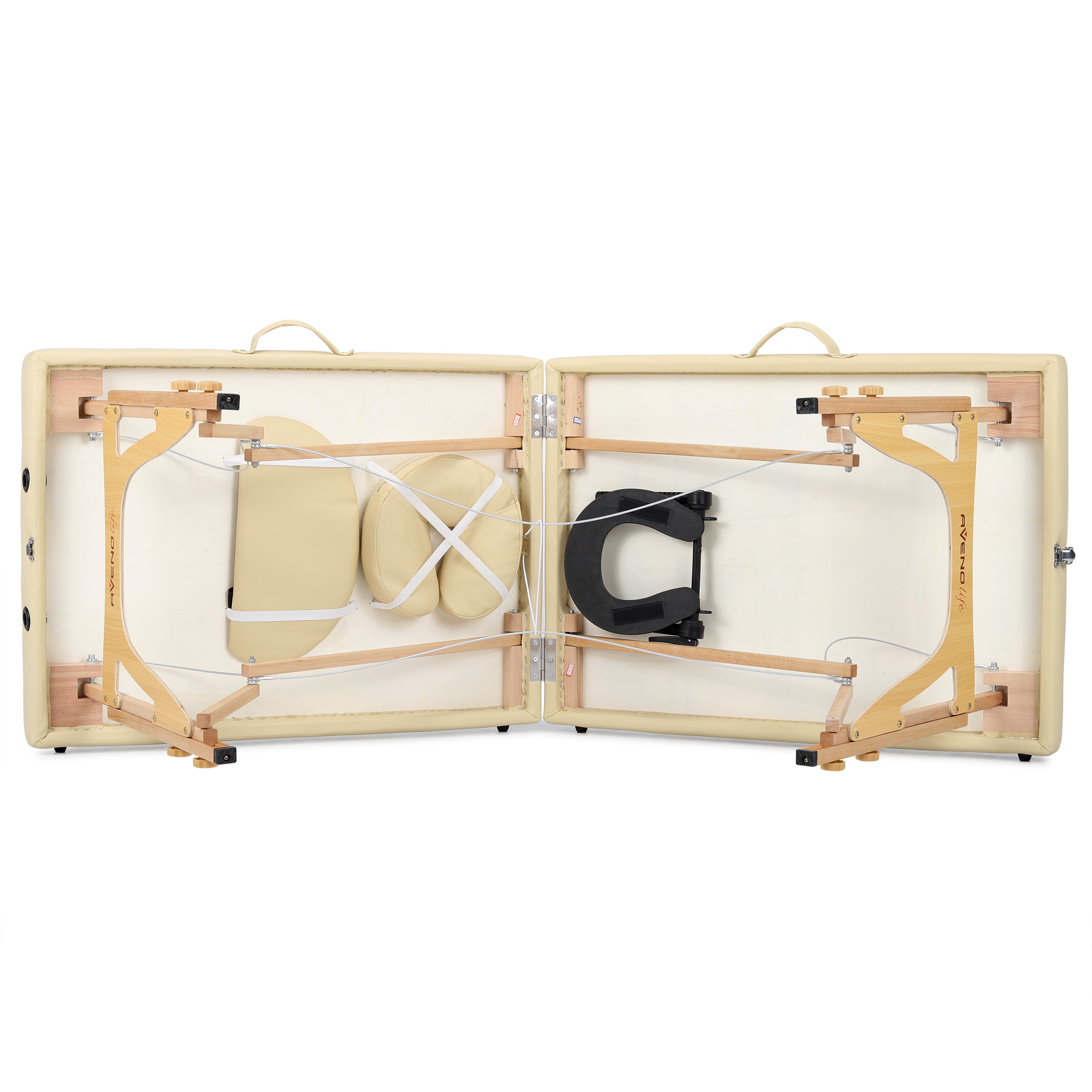 La table de massage Sonia est une table de massage en bois ultra-légère d'AVENO LIFE avec un plateau en deux parties. Un modèle idéal pour ceux qui recherchent des solutions éprouvées à un prix économique.