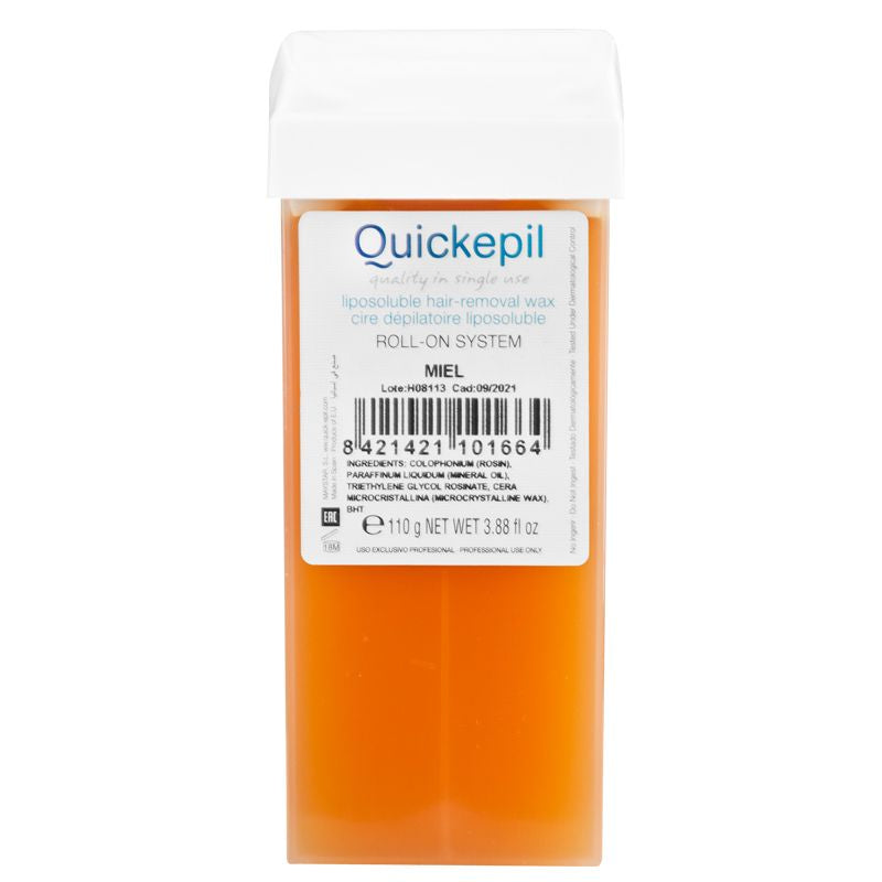 La cire QUICKEPIL roll-on est spécialement conçue pour les esthéticiennes qui recherchent d'excellents résultats. Grâce à une formule spéciale, le rouleau étale la cire en bandes beaucoup plus fines, ce qui la fait refroidir presque instantanément, minimisant ainsi les brûlures. Le produit est ensuite facilement retiré à l'aide de bandes. Cire universelle pour tous les types de peau à base de cire d'abeille.