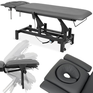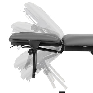 Plateau à 4 segments : Le plateau de la table, mesurant 192 cm x 68 cm, est composé de 4 segments qui peuvent être facilement ajustés aux besoins individuels du patient. Le réglage de l'appui-tête et des accoudoirs assure un ajustement précis de la position du patient, ce qui est crucial lors de la thérapie manuelle et du massage.