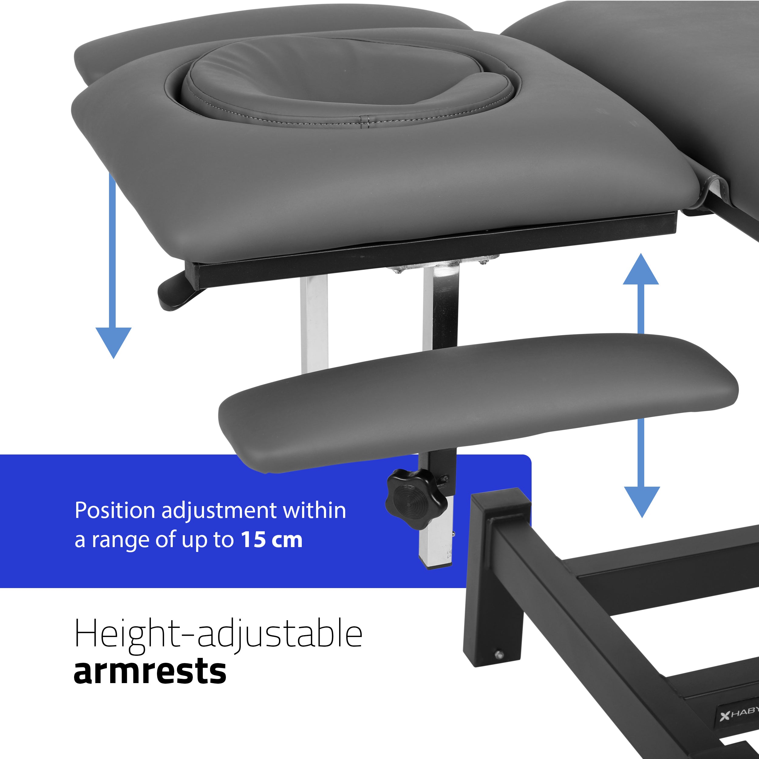 Matériaux de haute qualité : Le revêtement en PVC durable est facile à nettoyer et résistant aux dommages, ce qui garantit une utilisation à long terme. La mousse de 7 centimètres offre un confort optimal au patient, même pendant les longs traitements.