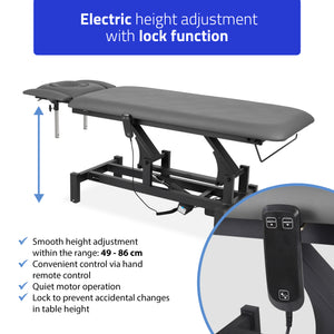 Réglage électrique de la hauteur : La table Fortis 4 ERGO est équipée d'un actionneur électrique silencieux et certifié qui permet un réglage précis de la hauteur de 49 cm à 86 cm, assurant ainsi le confort du thérapeute et la commodité du patient.