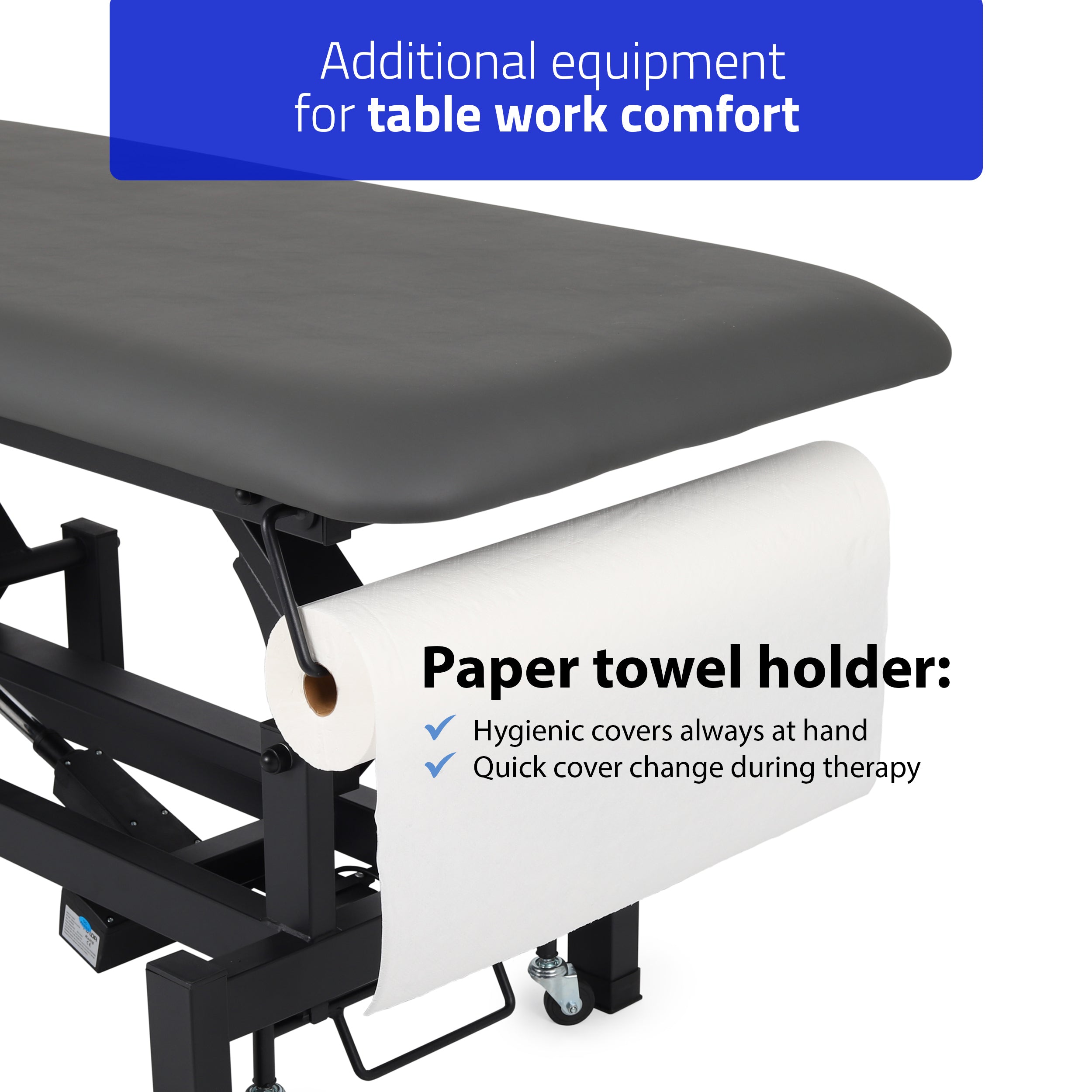 Construction durable : La résistance accrue du cadre signifie que la charge admissible de la table est de 200 kg, ce qui permet une utilisation sûre même avec une charge plus importante. Grâce à sa construction stable, la table est résistante aux vibrations et aux mouvements pendant les traitements.