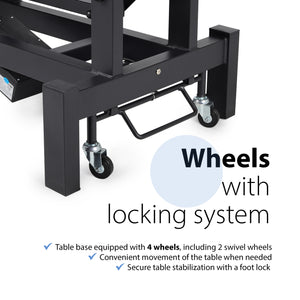 Système de mobilité avec verrouillage : La table est équipée de 4 roulettes, dont 2 roulettes pivotantes, qui facilitent son déplacement en douceur.