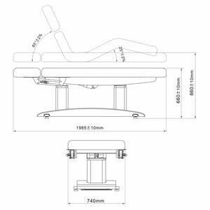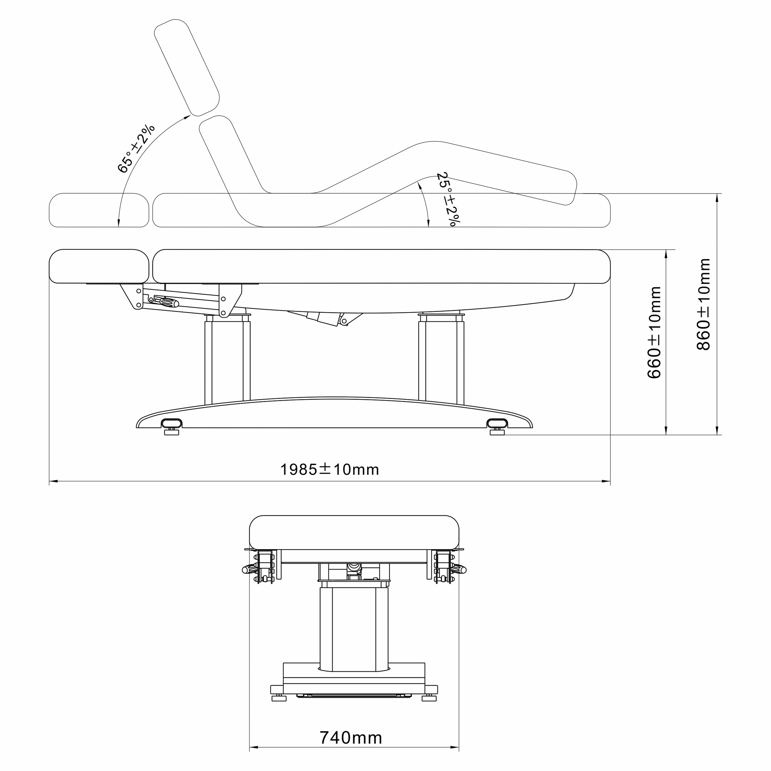 4 moteurs durables et un réglage électrique via une télécommande manuelle vous permettent de positionner la hauteur du plateau et les angles d'inclinaison de l'appui-tête et du repose-pieds.