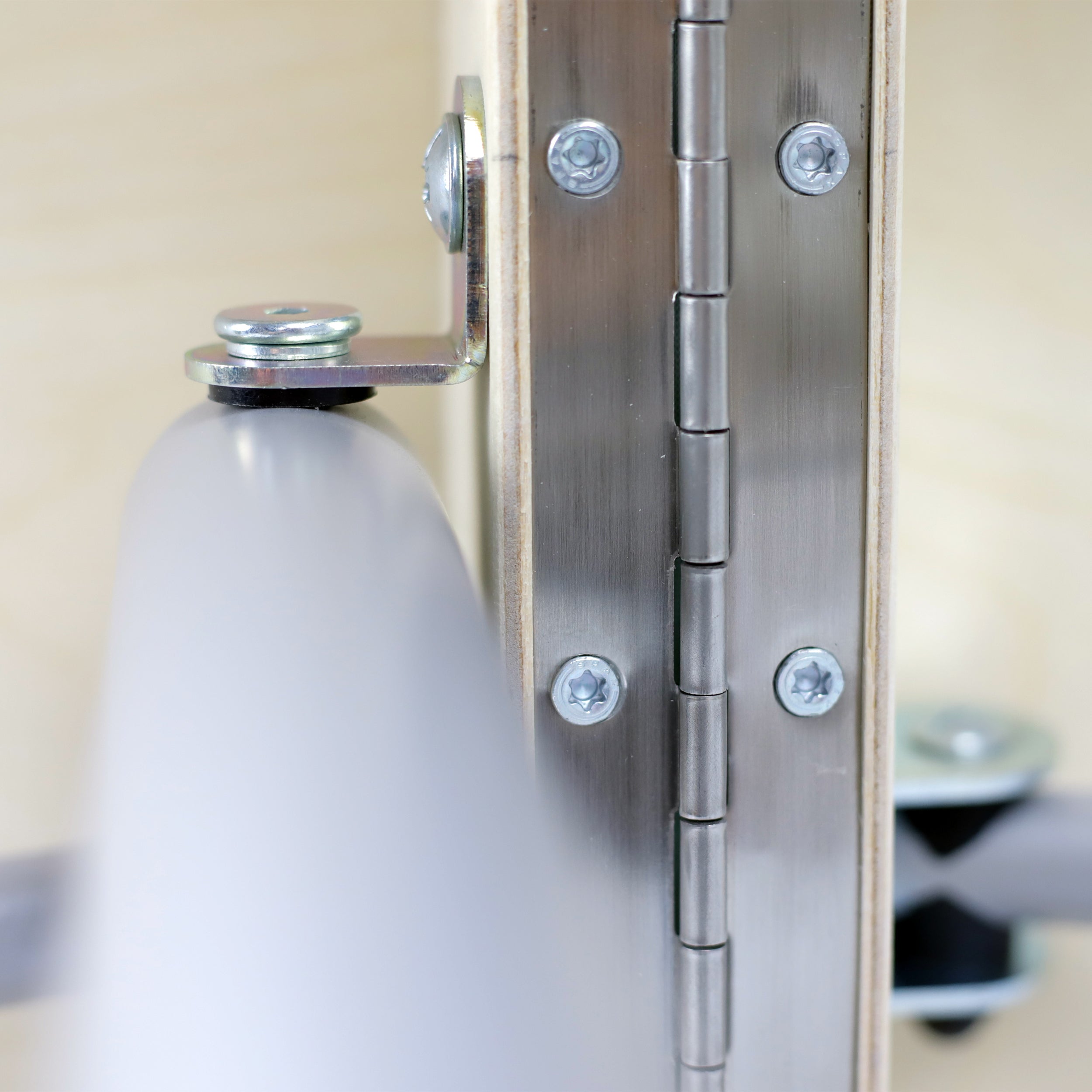 Une charnière durable en acier inoxydable, protégée par un collier de rembourrage protecteur
