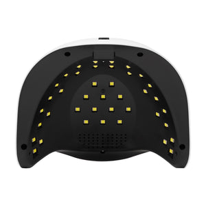 La minuterie de la lampe a quatre temps de travail programmés: 10 s, 30 s, 60 s et 99 s (ce que l'on appelle le «Low Heat Mode»). De plus, si aucun mode n'est sélectionné, le capteur de mouvement intégré allume automatiquement la lampe lorsque vous placez les doigts de la main ou du pied en dessous, en prenant un temps d'exposition maximal de 120 s. Le temps de durcissement est décompté sur l'écran - quel que soit le mode sélectionné. Cela permet d'ajuster facilement la durée d'exposition au stylisme réalisé à un moment donné.