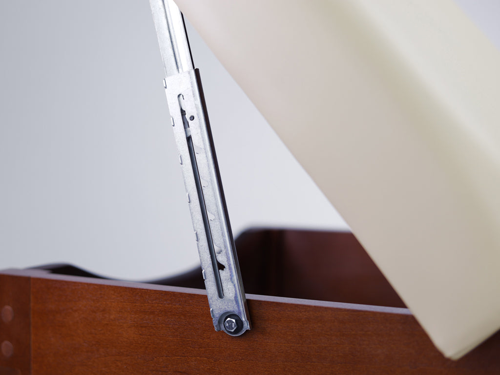 Canapé exceptionnellement confortable, en deux sections avec hauteur réglable, équipé d'une étagère pratique pour accessoires et cosmétiques.