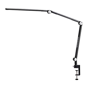 La lampe, avec sa forme simple en aluminium dans une finition noire mate, enchante par son aspect futuriste, qui s'intégrera parfaitement dans presque tous les intérieurs. Grâce au support fonctionnant sur le principe d'un étau, il est possible de réaliser un montage facile et stable sur un plan de travail, et le trépied d'une hauteur de 135 cm assure une fonctionnalité appropriée. La surface lisse de la lampe la rend exceptionnellement facile à nettoyer, éliminant les problèmes liés aux éléments difficiles d'accès.