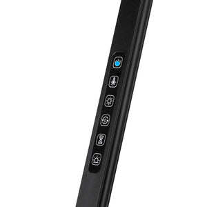 La couleur et l'intensité de la lumière peuvent être réglées avec précision à l'aide du panneau tactile situé sur la tête ou de la télécommande sans fil fournie. Le réglage offre 5 niveaux d'intensité lumineuse et de température de couleur (froide, neutre, chaude). L'utilisateur a également la possibilité de choisir le panneau actif - supérieur, inférieur ou les deux simultanément. La lampe dispose également d'une fonction de réglage du mode temporisé : le cycle comprend 25 minutes d'éclairage, puis 5 minutes de pause. Un appui prolongé sur le bouton dédié active l'arrêt automatique de la lampe après 60 secondes. Le panneau tactile permet de régler le mode Sunlight (couleur 4000 K, intensité 100 %), et la télécommande permet de choisir des modes supplémentaires : Focus (couleur 5500 K, intensité 80 %) et Relax (couleur 3000 K, intensité 40 %).