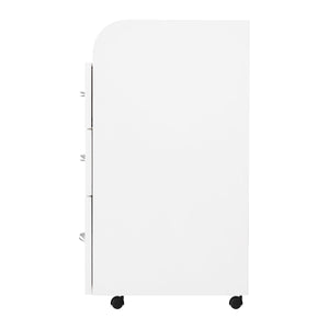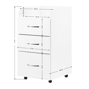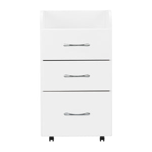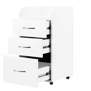 Three drawers of various sizes allow for convenient organisation of accessories, tools and cosmetic products. The mobility of the furniture is ensured by practical castors, including two with brakes, which facilitate moving the cabinet and allow it to be placed stably in the desired location. The design, created with podiatry clinics in mind, includes a dedicated space for a podiatry drill with an absorber, which promotes ergonomic organisation of the workstation and increases the comfort of performing treatments.