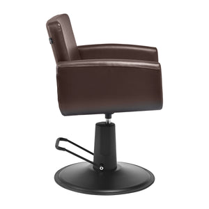 The Gabbiano Mataro hairdressing chair combines modern simplicity with functionality. Its subtly rounded lines give it a lightness, while the stable, round base in matte black emphasises its professional look. The seat, finished with soft-touch synthetic leather in shades of brown, ensures comfort even during long treatments. Carefully selected materials ensure durability, moisture resistance, and ease of cleaning. The chair fits perfectly with both modern and classic interiors, emphasising the style and character of the salon
