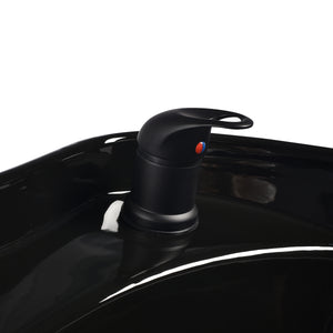 The appropriate depth of the white ceramic washbasin bowl prevents excessive splashing of water or products used during treatments. This allows for comfortable and effective performance of a wide range of services. The angle of the bowl can be adjusted, making it easy to adapt to individual needs. The high quality of the materials used makes the washbasin durable, resistant to discoloration and scratches, and very easy to clean. A properly profiled collar and inclined backrest provide support and comfort when washing the hair, and thanks to the comfortable black plastic overlay, the customer will not feel the unpleasantness of the cold ceramic surface.