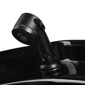 The practical hair wash unit is equipped with a mixer faucet, which provides easy access to hot and cold water. This makes it easier to adjust the temperature to the customer's individual preferences. A dedicated place to hang up the handset makes work easier, and the chrome-plated plug with a special strainer allows you to control the water flow and maintain high hygiene standards in the salon. The water connection has been placed inside the base, allowing the pipes to be easily hidden. A significant advantage of this model is the opening left between the backrest and the seat, which makes it easier to keep the living room clean by allowing you to easily sweep dirt from every nook and cranny of the chair. The hair wash unit has been designed in such a way as to ensure comfort during various treatments, ensuring proper back support. The combination of functionality and amenities makes working in a hairdressing salon even more comfortable.