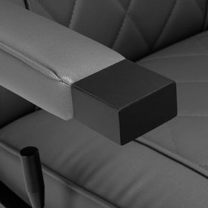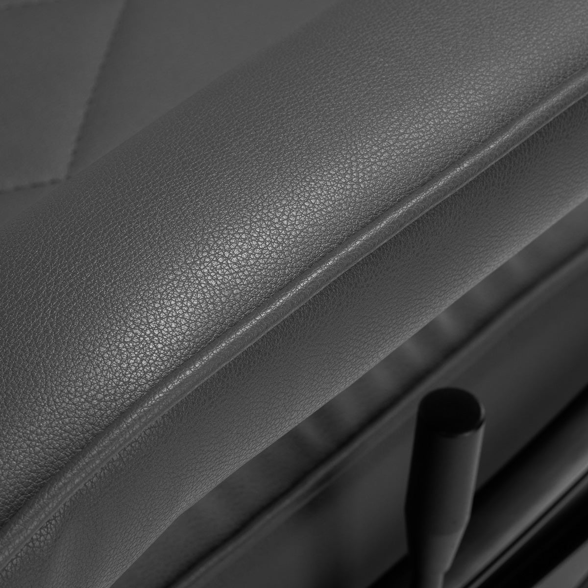 The chair's solid round base construction ensures stability and excellent user comfort. The seat filling, made of deformation-resistant foam, and the upholstery crafted from soft-touch synthetic leather with a matte finish ensure long-lasting durability and comfort during prolonged use. Stylish stitching on the upholstery adds character, evoking automotive design inspirations that enhance its elegant appearance. This feature also makes the chair moisture-resistant, durable, and easy to clean. The upholstery in grey tones gives the chair a unique character, and its minimalist style allows it to blend seamlessly with the decor of any barbershop.