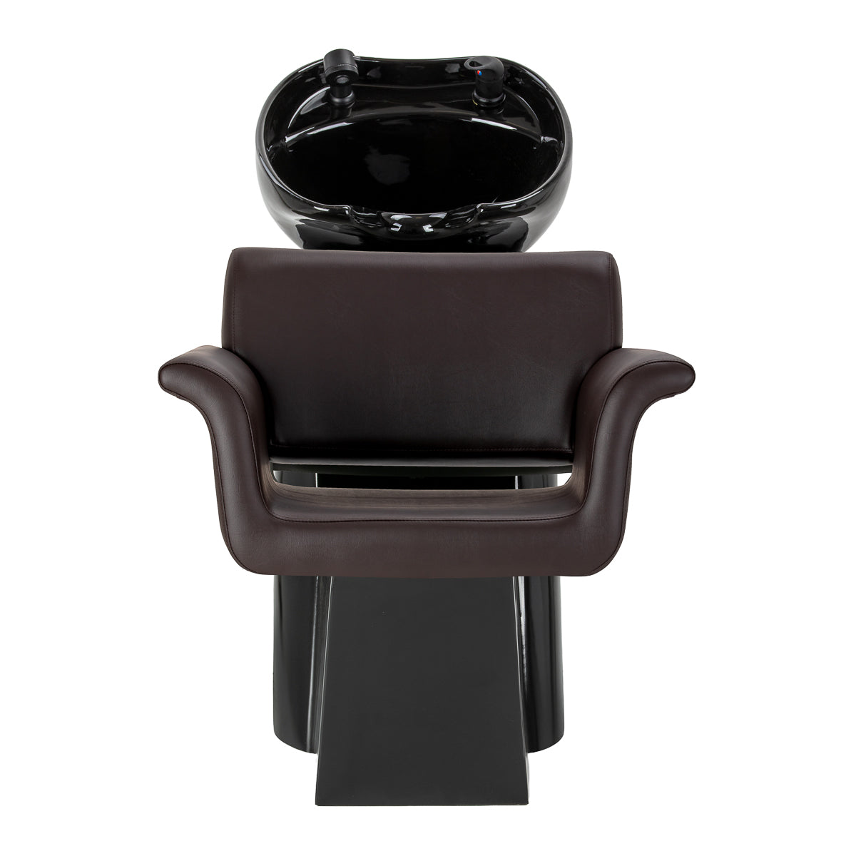 The chair combines a modern, minimalist form with a high level of comfort. The characteristically outward-curving armrests lend it an elegant character, whilst supporting a comfortable and natural position for the client. The backrest, with its optimal angle of inclination, promotes correct posture and relaxation during treatments. The use of durable, moisture-resistant materials makes it easy to maintain and ensures the furniture retains its aesthetic appeal for a long time. A complete set of fittings – tap, shower head and dedicated hoses – ensures the unit is fully ready for use. The universal design means the model fits perfectly into both modern and classic interiors, emphasising the professional character of the salon.