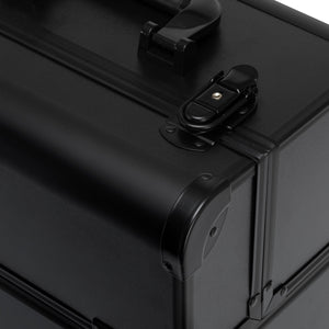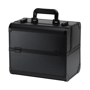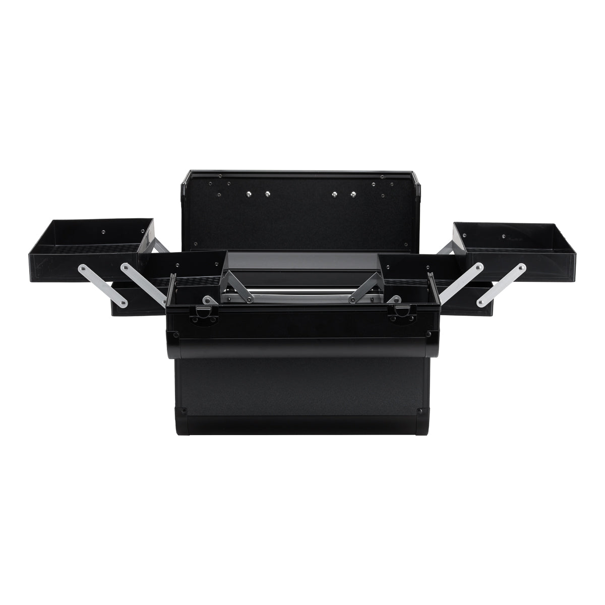 Le design moderne avec une finition lisse des parois dans les tons de noir avec des accents métalliques ajoute de l'élégance. La poignée facilite le transport, ce qui est particulièrement important pour les stylistes mobiles. Fabriqué à partir de matériaux durables et résistants aux dommages, il assure un confort d'utilisation au quotidien. La fermeture solide à loquet avec une clé protège le contenu, et la construction légère et durable rend la mallette facile à transporter.