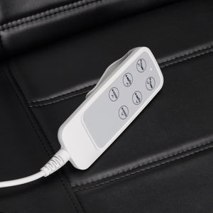 Le fauteuil est également équipé d'accoudoirs mobiles, d'un appui-tête coulissant et d'un support métallique pour suspendre la télécommande. Il est rempli de mousse de la bonne dureté et recouvert de cuir synthétique doux au toucher dans des tons noirs, ce qui rend l'équipement confortable à utiliser, résistant à l'humidité et facile à nettoyer. Les éléments décoratifs en bois sur les accoudoirs distinguent le fauteuil des autres modèles, constituant un accent visuellement attrayant et élégant. Les coutures profilées donnent au fauteuil un look élégant et rendent le siège ergonomique.