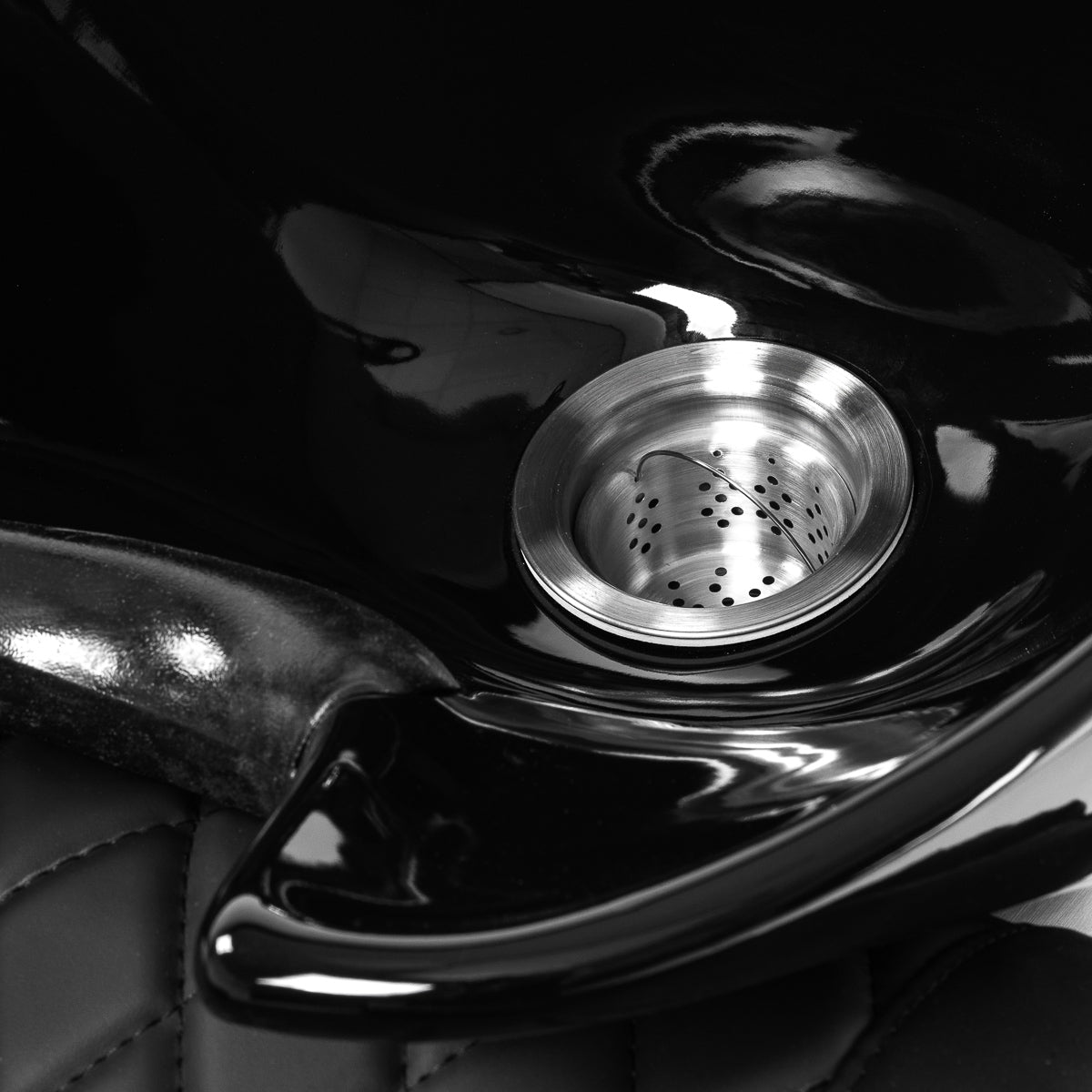 La profondeur de la cuve en céramique du lavabo dans les tons noirs permet de réaliser confortablement et efficacement une large gamme de services de coiffure, en évitant les éclaboussures excessives d'eau et de produits utilisés pendant le traitement. Le matériau utilisé rend le lavabo durable, résistant à la décoloration et aux rayures et très facile à nettoyer. Le col profilé et le dossier incliné offrent un soutien et un confort lors du lavage des cheveux, et grâce à la protection confortable en plastique dans les tons noirs, le client ne ressentira pas le désagrément lié à la froideur de la surface en céramique.