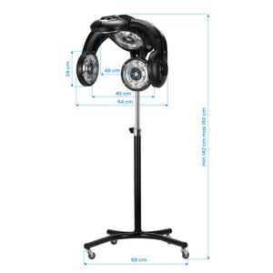 L'infrason sur pied professionnel Gabbiano GL-505S est un appareil indispensable lors de la réalisation de services nécessitant une température élevée, tels que : la coloration, la décoloration, les soins ou le séchage, ainsi que les permanentes. L'appareil réduit considérablement la durée du traitement, permettant d'accueillir un plus grand nombre de clients tout en maintenant une haute qualité des services fournis dans le salon.