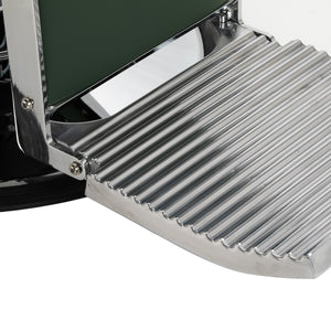 Sturdy base construction ensures stability and high comfort. The seat is filled with deformation-resistant foam and upholstered with soft, matt synthetic leather, combining durability with comfort. The materials used for the finish are moisture-resistant, durable and easy to clean, making the chair perfect for everyday use. Stylish stitching and upholstery in shades of green give it a unique character, blending perfectly with the décor of modern barbershops.