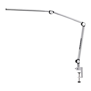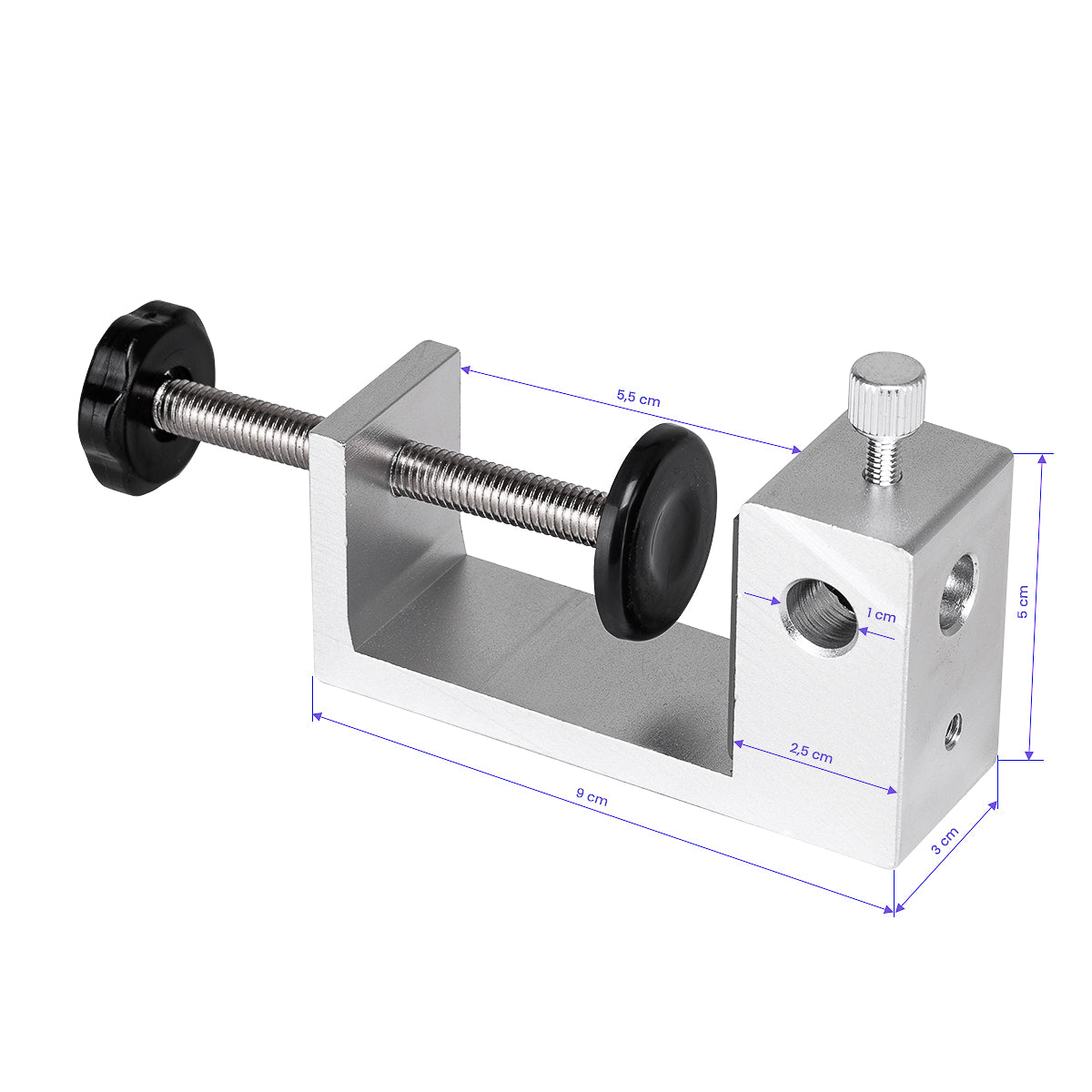 La lampe est équipée d'un support fonctionnant sur le principe d'un étau, qui permet un montage rapide et pratique sur un plan de travail. L'ouverture maximale du support est de 5,5 cm, ce qui fait qu'il s'adapte à la plupart des surfaces de travail. La possibilité de monter la lampe dans différentes positions du support offre une grande flexibilité, permettant d'adapter précisément son réglage. Grâce à cela, la lampe offre de larges possibilités de personnalisation et un ajustement facile de l'éclairage aux besoins individuels.