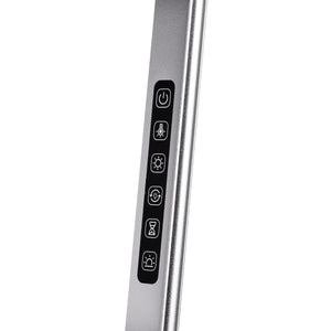 La couleur et l'intensité de la lumière peuvent être ajustées avec précision à l'aide du panneau tactile situé sur la tête ou de la télécommande sans fil fournie. Le réglage offre 5 niveaux d'intensité lumineuse et de température de couleur (froide, neutre, chaude). L'utilisateur a également la possibilité de choisir le panneau actif - supérieur, inférieur ou les deux simultanément. La lampe dispose également d'une fonction de réglage du mode temporisé : le cycle comprend 25 minutes d'éclairage, puis 5 minutes de pause. Une pression prolongée sur le bouton dédié active l'arrêt automatique de la lampe après 60 secondes. Le panneau tactile permet de régler le mode Sunlight (couleur 4000 K, intensité 100 %), et la télécommande permet de choisir des modes supplémentaires : Focus (couleur 5500 K, intensité 80 %) et Relax (couleur 3000 K, intensité 40 %).