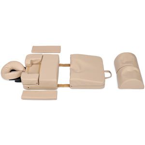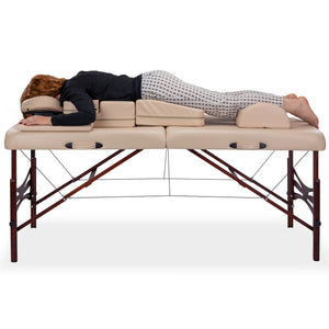 Un ensemble de coussins de massage conçus pour le massage de grossesse, permettant un meilleur positionnement de la femme pendant le massage. Les coussins offrent un confort total aussi bien en position latérale que sur le ventre, améliorant l'efficacité du massage et facilitant sa réalisation. Les coussins sont fabriqués à partir de mousses à élasticité et résistance à la déformation optimales.