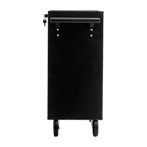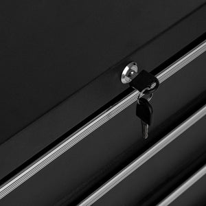 Four black plastic castors - including one pair with a locking system - ensure smooth guidance and stable positioning of the assistant. The side handle makes it easy to manoeuvre the furniture with precision. A key lock prevents the drawers from pulling out on their own and allows storage of more delicate items of equipment, documentation or materials that require special care.