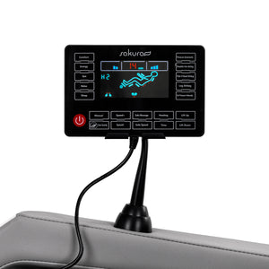 Le meuble est équipé d'un panneau de commande clair avec écran LCD, qui peut être placé sur le support monté sur l'accoudoir droit ou tenu dans les mains. Cela rend l'utilisation du fauteuil intuitive et pratique. L'écran LCD affiche des informations sur le fonctionnement actuel de l'appareil, notamment la zone du corps massée, l'intensité du massage, la durée du traitement et le programme sélectionné. Le panneau permet d'ajuster librement les paramètres du fauteuil et de choisir le mode de massage. Il permet également de régler la durée de la session, avec des options de 5, 10, 15, 20, 25 ou 30 minutes.