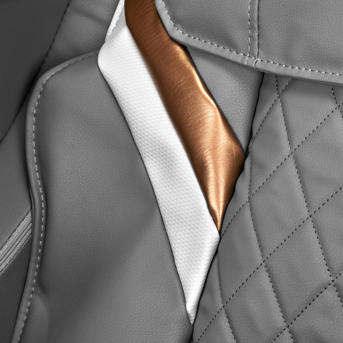 L'intérieur confortable du fauteuil est recouvert d'une imitation de cuir agréable au toucher dans des tons de gris. L'utilisation de ce matériau le rend très résistant à l'humidité et facile à nettoyer. Les matériaux utilisés sur les parties extérieures du fauteuil dans des tons de blanc et de gris, ainsi que l'élément décoratif dans une teinte rose gold, confèrent au produit un aspect élégant et caractéristique qui le distingue des autres. Les coutures soigneusement réalisées lui donnent un aspect élégant, et la construction solide garantit une longue durée de vie. Le modèle compact avec une finition esthétique et des couleurs classiques s'intégrera parfaitement dans n'importe quel intérieur. Le fauteuil de massage Sakura Classic 802A est un moyen idéal de se détendre à tout moment, surtout après une journée épuisante ou un entraînement difficile.